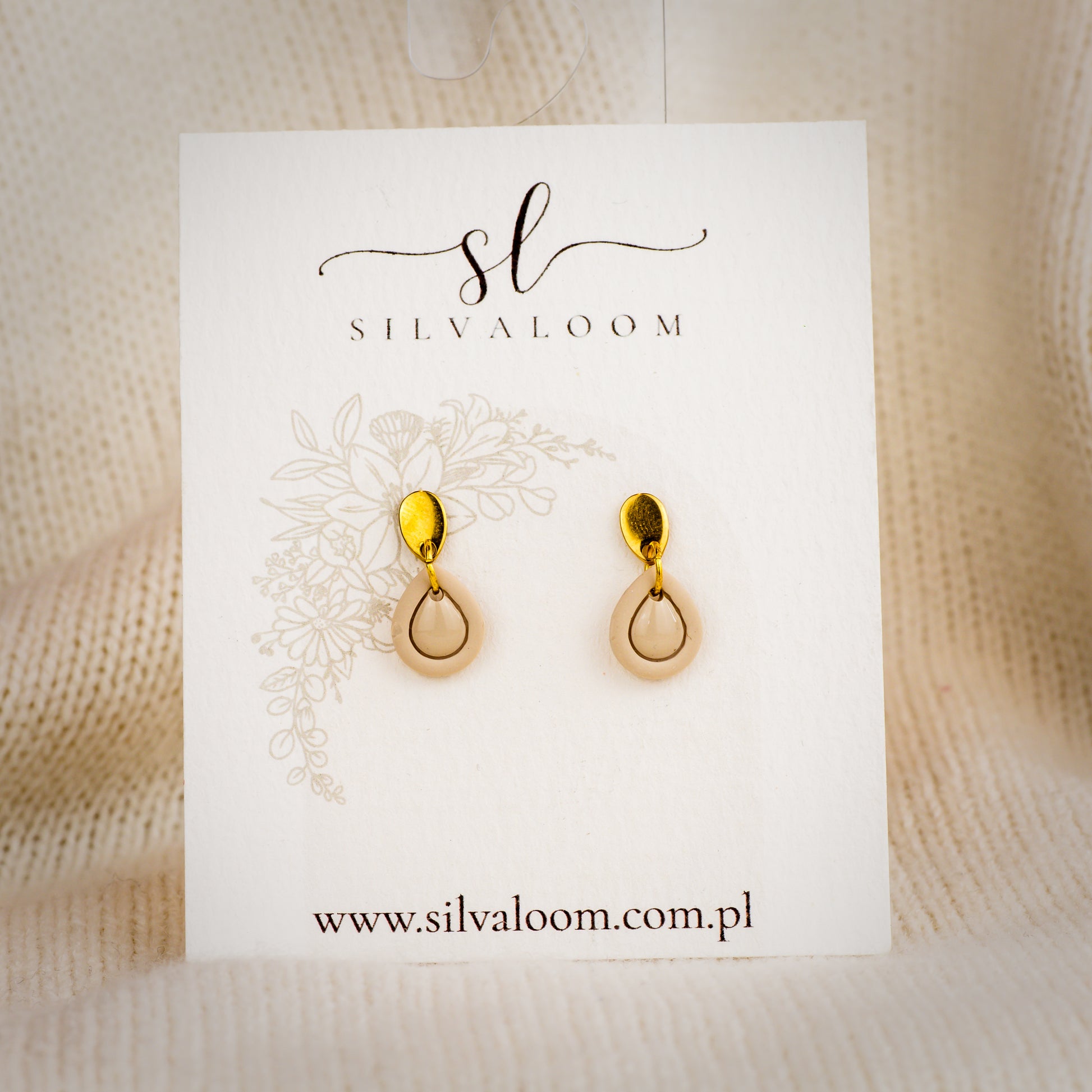 Kolczyki mini łezki beżowe – stal chirurgiczna | Silvaloom