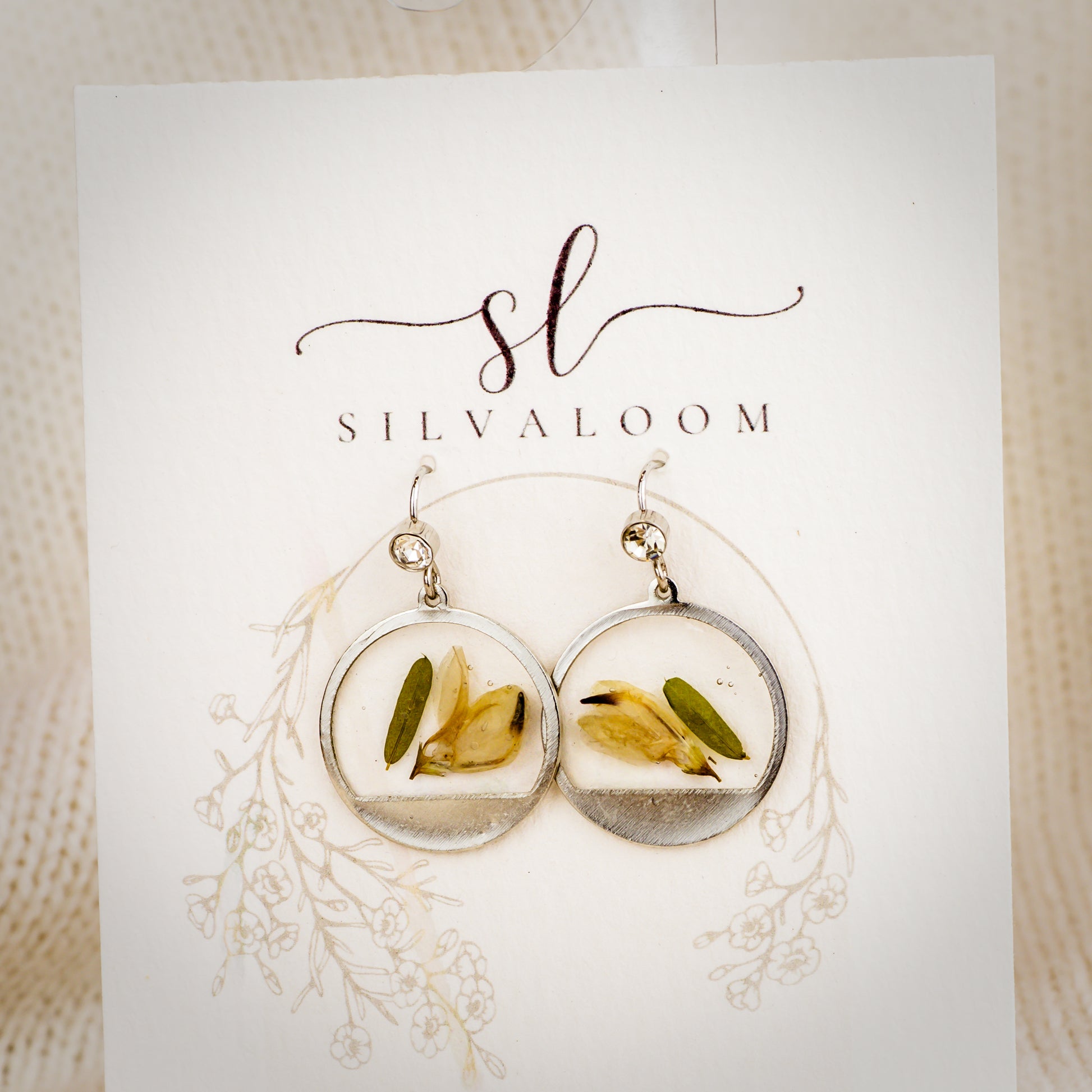 Kolczyki okrągłe z suszonymi roślinami – stal chirurgiczna | Silvaloom