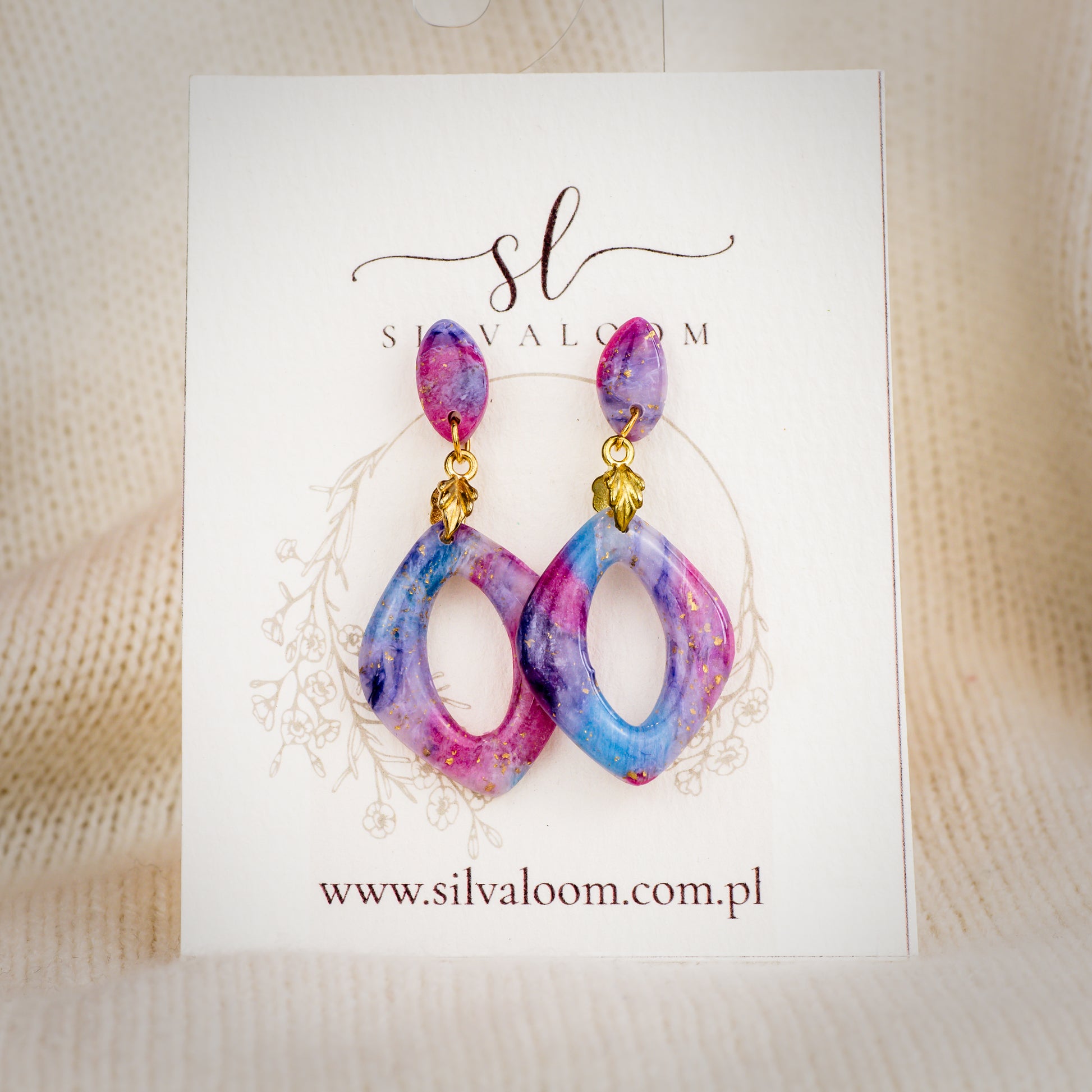 Kolczyki ażurowe fioletowo-błękitne z glinki polimerowej – stal chirurgiczna | Silvaloom