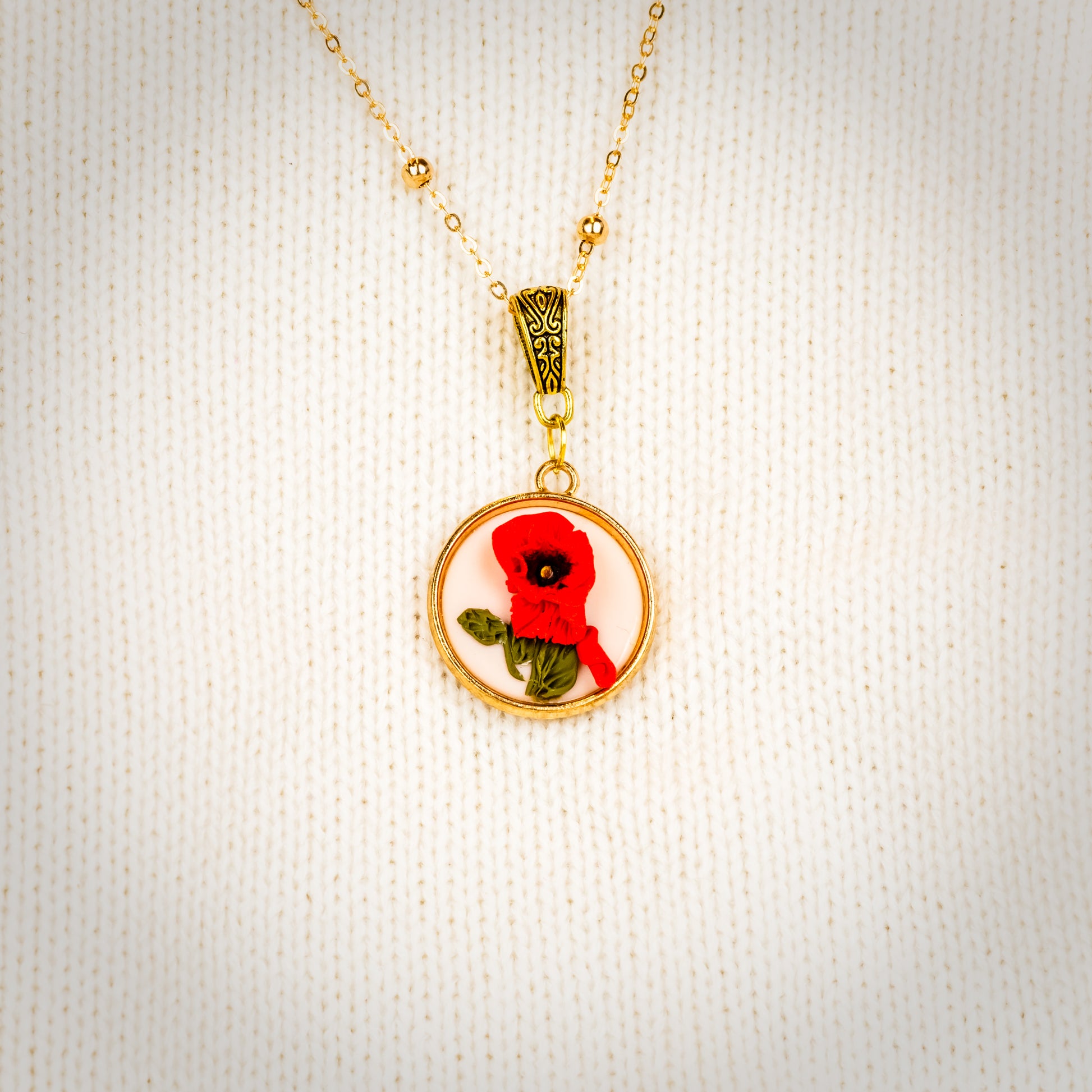 Naszyjnik z czerwonym makiem – ręcznie lepiony z glinki polimerowej, stal chirurgiczna | Silvaloom