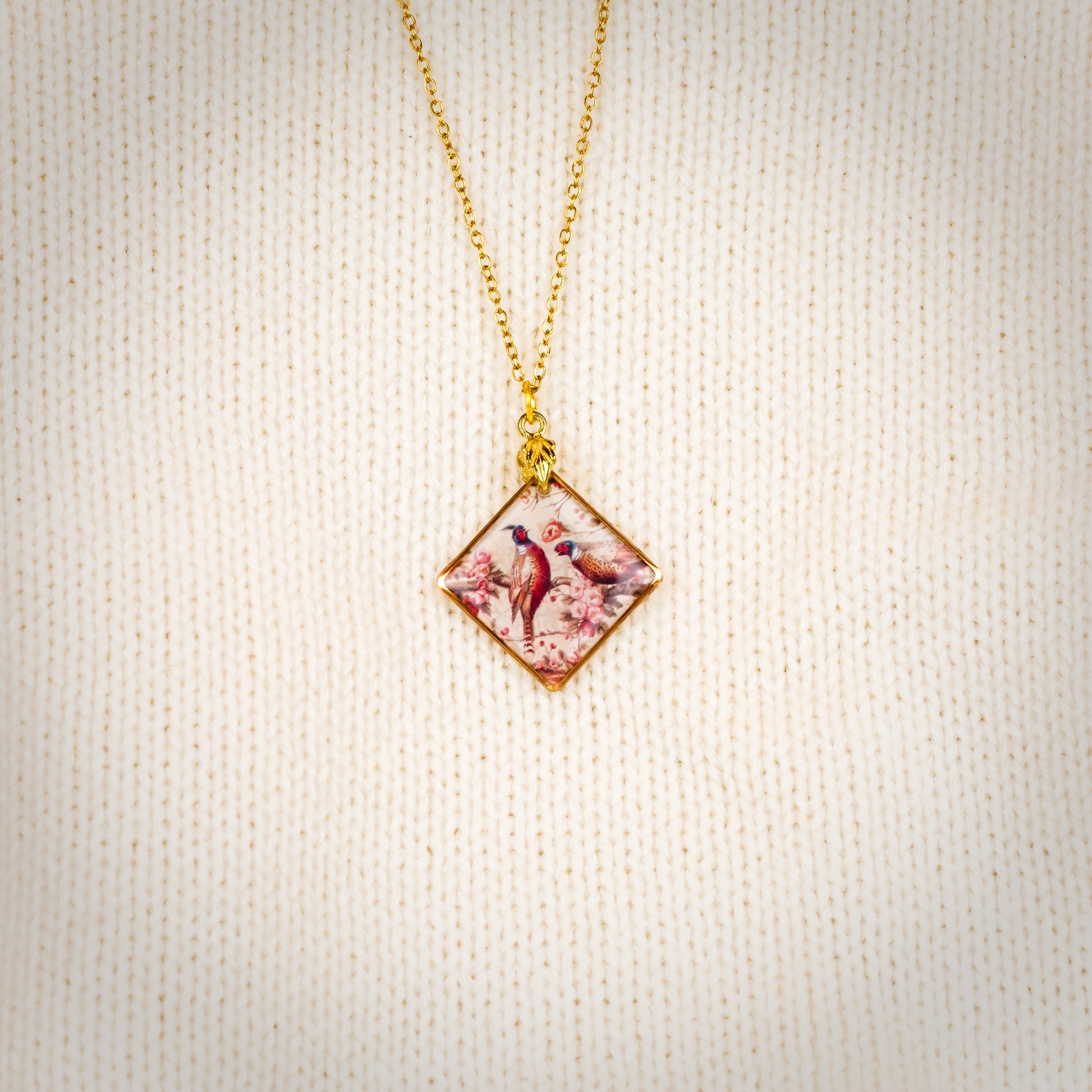 Naszyjnik Bażanty – romboidalny medalion z żywicy, złoty | stal chirurgiczna | Silvaloom