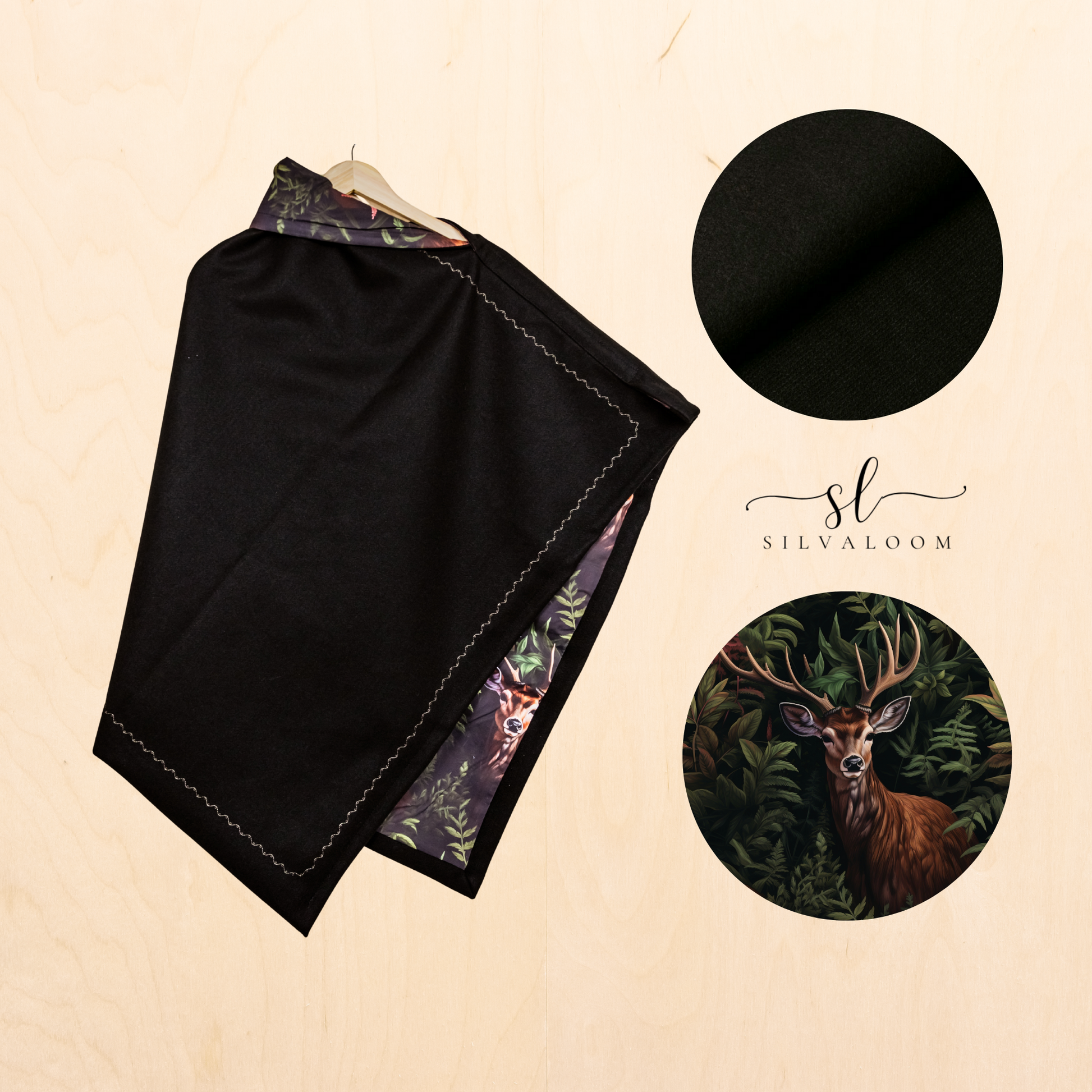 Wierzchnia warstwa wykonana z flauszu z domieszką wełny. Wewnątrz – drukowana bawełna z motywem inspirowanym lasem.