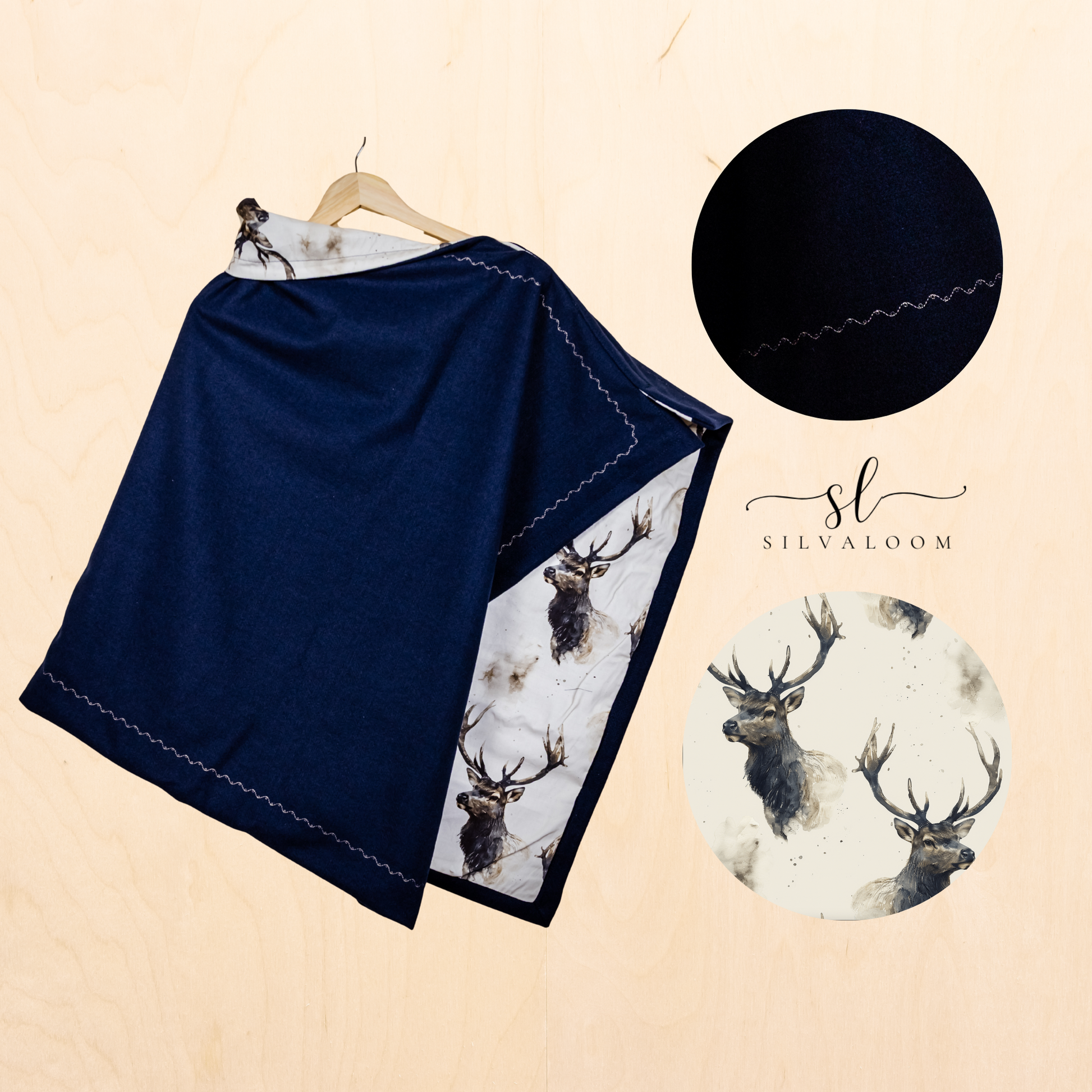 Wierzchnia warstwa wykonana z flauszu z domieszką wełny. Wewnątrz – drukowana bawełna z motywem inspirowanym lasem.